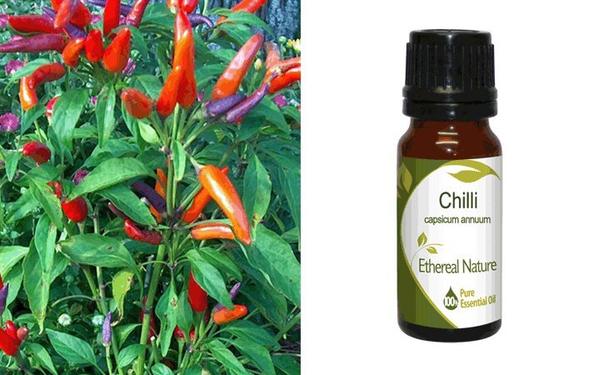 Το αιθέριο έλαιο του Τσίλι περιέχει την ουσία Capsaicin, η οποία θεωρείται πως αντιμετωπίζει τις φλεγμονές της επιδερμίδας και η οποία είναι κατάλληλη για την αντιμετώπιση μυικών πόνων καθώς και πόνων που σχετίζονται με την αρθρίτιδα. Στην ουσία, το αιθέριο έλαιο του Τσίλι θεωρείται ισχυρά αναλγητικό.