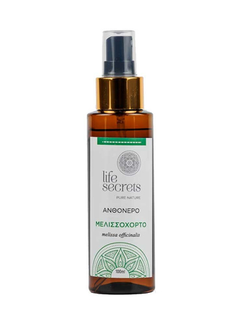 Tο ανθόνερο Μελισσόχορτου της εταιρίας Life secrets είναι 100% φυσικό προϊόν. Παράγεται μετά από απόσταξη φρέσκων ανθέων μελισσόχορτου (Melissa Officinalis ) που καλλιεργούνται στην Ξηρολίμνη Κοζάνης. Αποτελεί βασικό συστατικό σε πολλά ακριβά προϊόντα περιποίησης προσώπου και ματιών.