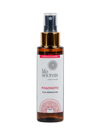 Το ροδόνερο της εταιρίας Life secrets είναι 100% φυσικό προϊόν. Παράγεται μετά από διπλή απόσταξη φρέσκων ρόδων (Rosa Damascena) που καλλιεργούνται με απόλυτα φυσικό τρόπο στην Ξηρολίμνη Κοζάνης.