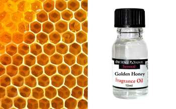 Φανταστείτε την ευωδιά που ξεχύνεται μέσα από ένα βάζο με αγνό, φυσικό μέλι, μέσα στο οποίο υπάρχει ακόμη ένα μεγάλο κομμάτι της κηρήθρας. Αυτό ακριβώς το άρωμα θα σας κατακλύσει, μόλις ανοίξετε το μπουκαλάκι του αρωματικού ελαίου Golden Honey. Πλούσιο νέκταρ χρυσαφένιου μελιού συνδυασμένο αρμονικά με το σαγηνευτικό άρωμα ανθισμένων μπουκέτων και ένα διακριτικό άγγιγμα κρεμώδους βανίλιας. Απλά μεθυστικό. Πωλείται σε μπουκαλάκι των 10ml.