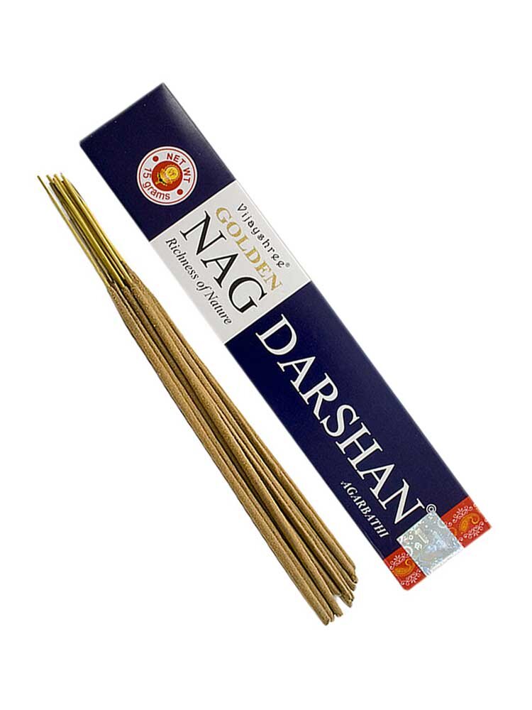 Το θυμίαμα Golden Nag Darshan είναι ένα υπέροχο μείγμα από σανταλόξυλο, γιασεμί και βανίλια, έχει ζεστό και πλούσιο άρωμα και είναι ιδανικό για τη δημιουργία μίας ατμόσφαιρας γαλήνης, ηρεμίας και περισυλλογής, καθώς καταπραΰνει και απελευθερώνει τις αρνητικές πτυχές του μυαλού όπως ο θυμός, η απληστία και η άγνοια, φέρνοντάς μας πιο κοντά στην αυτογνωσία, την ευλάβεια και την αφοσίωση.