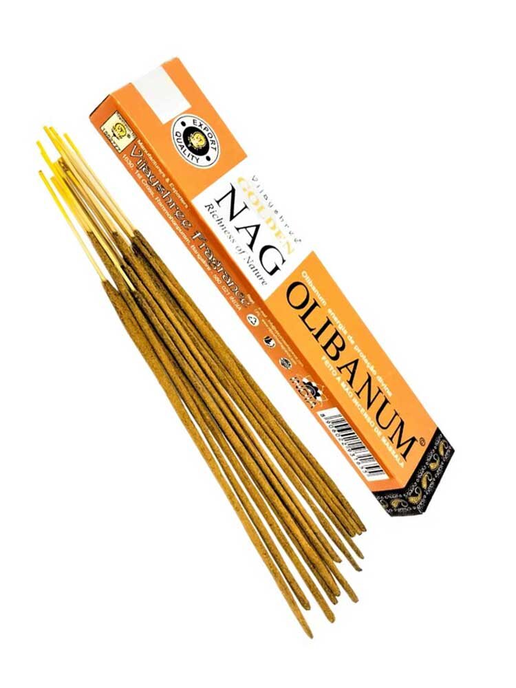 Πρόκειται για ειδικά διαμορφωμένα θυμιάματα, φιλικά προς το περιβάλλον, τα οποία αναμειγνύονται με ημί-υγρή ρητίνη, που λαμβάνεται από το δέντρο Ailanthus Malabarica, στο οποίο η τελευταία οφείλει το χαρακτηριστικό κρεμώδες χρώμα της. Το Golden Nag Olibanum είναι επίσης ευρέως γνωστό ως θυμίαμα ευτυχίας καθώς το ευχάριστο, μεθυστικό άρωμά του διεγείρει τις αισθήσεις και μεταβάλλει την διάθεση.