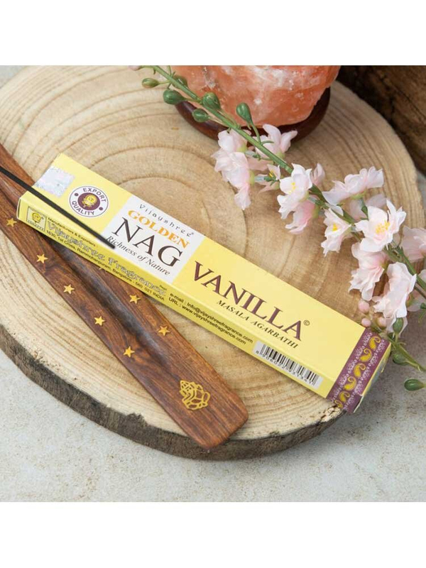 Αυτό το θυμίαμα είναι ένα από τα πιο δημοφιλή στον κόσμο για το μαγευτικό και σαγηνευτικό άρωμά του. Η γλυκιά, αισθησιακή ευωδιά της βανίλιας, γνωστή για τις αφροδισιακές της ιδιότητες, είναι ιδιαίτερα ευεργετική στο νευρικό σύστημα, καθώς βοηθά στην αντιμετώπιση της ανησυχίας, της νευρικότητας, της κατάθλιψης και της αϋπνίας, αλλά και στην ανακούφιση από το άγχος και το στρες, αφού έχει αναφερθεί ότι αυξάνει την έκκριση σερατονίνης, της ουσίας που σχετίζεται με την ευεξία και τη χαρά. Παράλληλα δημιουργεί στο χώρο μία μοναδική ατμόσφαιρα σαγήνης που σάς “προσκαλεί” σε ένα μοναδικό αισθησιακό ταξίδι.