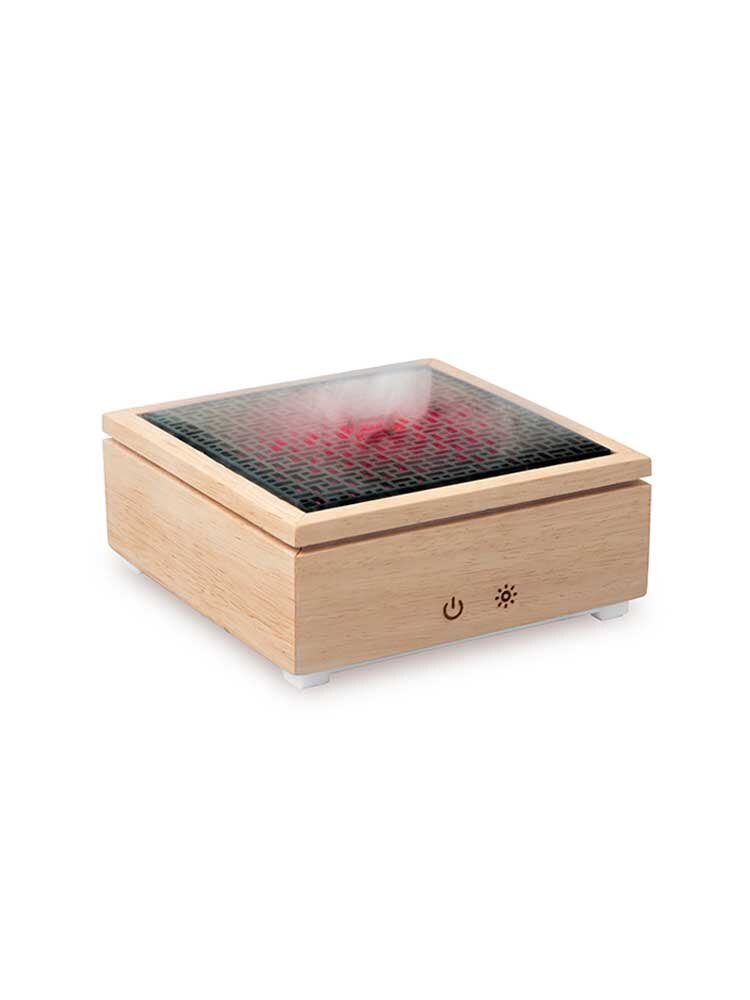 Χρήση: Σηκώστε την χρωματιστή διακοσμητική σχάρα και ρίξτε μικρή ποσότητα νερού και λίγες σταγόνες αιθέριου ελαίου στην ειδική θήκη μέχρι το σημείο χάραξης. Αγγίξτε απαλά τα πλήκτρα ενεργοποίησης και φωτισμου στο μπροστινό τμήμα του δρύινου πλαισίου και απολαύστε άμεσα μια φωτεινή στιγμή χαλάρωσης.