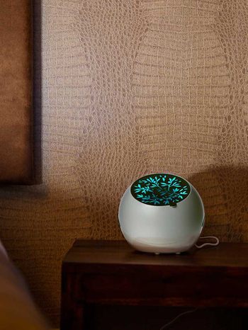 Κατά την ενεργοποίησή της συσκευής υπέροχα, λαμπερά χρώματα ξεχύνονται από τις διακοσμητικές μικρές τρυπούλες του μεταλλικού δίσκου στο μπροστινό τμήμα του diffuser, τα οποία και εναλλάσονται. Εντούτοις, μπορείτε να επιλέξετε το δικό σας χρώμα φωτισμού και να δημιουργήσετε την ατμόσφαιρα που σας ευχαριστεί.