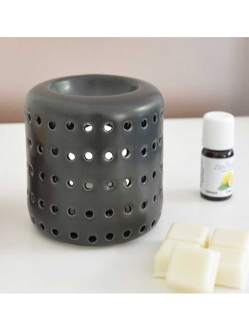 Η απόσταση μεταξύ της φλόγας και του ελαιούχου μείγματος, όπως επίσης και το σχέδιο με τις πολλές τρυπούλες στην επιφάνειά του, είναι προσεκτικά μελετημένα, προκειμένου να επιτευχθεί η τέλεια θερμοκρασία για τη διάχυση και να διατηρηθούν οι θεραπευτικές ιδιότητες των ελαίων. Επιπλέον, μέσα από τα ανοίγματα, το φως του κεριού διαθλάται στην ατμόσφαιρα δημιουργώντας ονειρεμένους, μαγικούς σχηματισμούς. Σε ένα υπέροχο γκρι-μαύρο χρώμα ταιριαστό σε κάθε διακοσμητικό στυλ.
