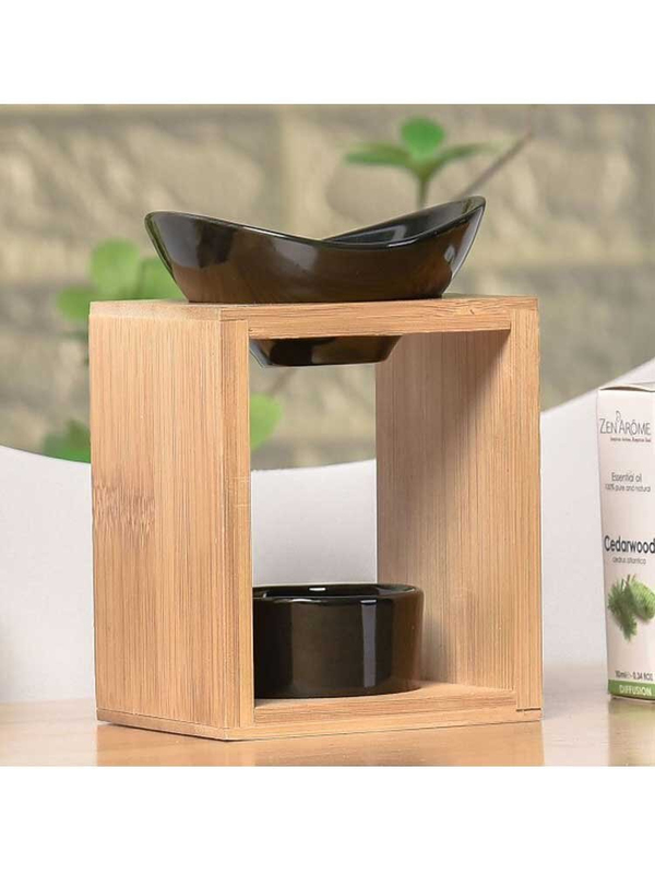 Ο καυστήρας αποτελείται από 2 κεραμικά στοιχεία, αφαιρούμενα, για εύκολο καθάρισμα, και μία ξύλινη βάση. Στο επάνω τμήμα της βάσης ένα κύπελλο υποδέχεται τα αρωματικά– και τα αιθέρια έλαια της αρεσκείας σας, ενώ στο κάτω μέρος της μία δεύτερη κεραμική θήκη φιλοξενεί διακριτικά ένα κερί τσαγιού (δεν περιλαμβάνεται), το οποίο θερμαίνει ήπια τα έλαια προκαλώντας αρωματική διάχυση και ταυτόχρονα μία ζεστή, αρωματική ατμόσφαιρα στον χώρο σας.