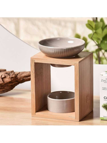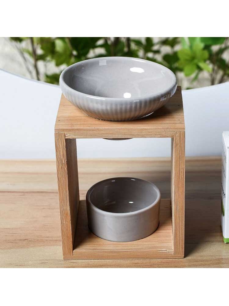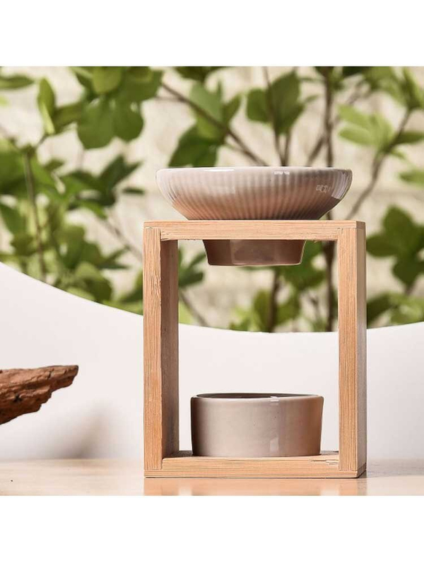 Ο καυστήρας Yona αποτελείται από δύο αφαιρούμενα κεραμικά κομμάτια, τα οποία εξυπηρετούν τον εύκολο καθαρισμό. Ένα κεραμικό κύπελλο στο επάνω τμήμα του “φιλοξενεί” τα αρωματικά– και τα αιθέρια έλαια, ενώ ένα δεύτερο κεραμικό στοιχείο, στο κάτω μέρος του είναι η “θήκη” για το κεράκι (δεν περιλαμβάνεται), το οποίο θερμαίνει ήπια το μείγμα προκαλώντας αρωματική διάχυση. Το σετ συμπληρώνει μία ανοιχτόχρωμη βάση από μπαμπού, δημιουργώντας στο σύνολό του ένα υπέροχο, διακοσμητικό αξεσουάρ.