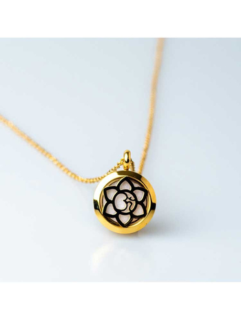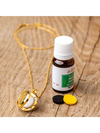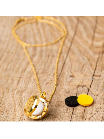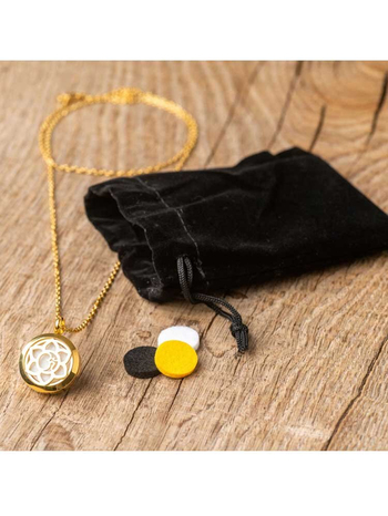 Θα παραλάβετε το ιδιαίτερο αυτό μενταγιόν αρωματοθεραπείας σε ένα πολύ όμορφο βελούδινο πουγκί, μαζί με μία κομψή αλυσίδα και 3 σφουγγαράκια διαφορετικού χρώματος (άσπρο, μαύρο, κίτρινο) για να τα συνδυάζετε με τα ντυσίματά σας. Τα σφουγγαράκια πλένονται και επαναχρησιμοποιούνται.