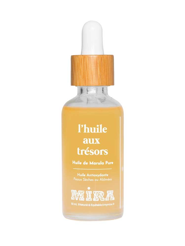 Το L΄huile aux tresors (Marula oil) της εταιρίας My MIRA είναι ιδανικό για την βαθιά ενυδάτωση της επιδερμίδας. Η ευεργετική του σύνθεση θα “γεμίσει” τα κενά στο εξωτερικό στρώμα της επιδερμίδας, θα σφραγίσει την υγρασία στο δέρμα και θα το αφήσει μαλακό και απαλό. Επίσης, λόγω των πολλών αντιοξειδωτικών που περιέχει, μεταξύ των οποίων και η φυτοχημική επικατεχίνη, θα ενισχύσει την παραγωγή κολαγόνου και ελαστίνης και θα αποτρέψει τον σχηματισμό των ελεύθερων ριζών που προκαλούνται από την έκθεση στις ακτίνες UV και τους ρύπους, περιορίζοντας τα σημάδια της γήρανσης, ενώ χάρη στα αμινοξέα του θα αναστείλει τον σχηματισμό λεπτών γραμμών και ρυτίδων έκφρασης.