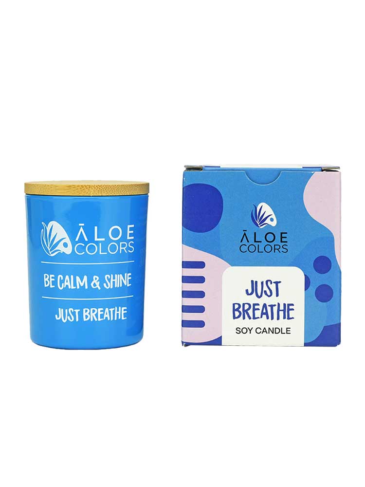 Δημιούργησε μια ζεστή, όμορφη και μυρωδάτη ατμόσφαιρα στον χώρο σας, με το αρωματικό κερί σόγιας Aloe Colors “Just Breathe”.