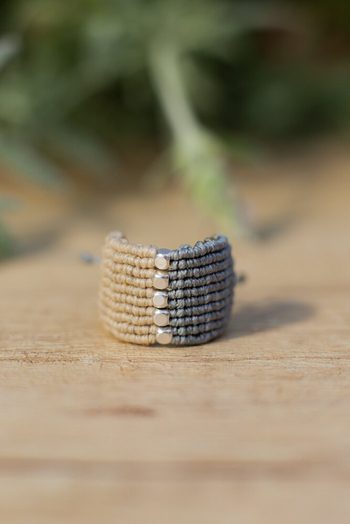 •Υλικό :Μακραμέ δαχτυλίδι γκρι με μπέζ,μεταλλικά ασημί στοιχεία