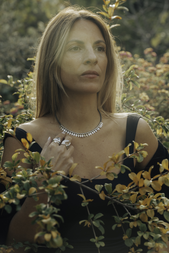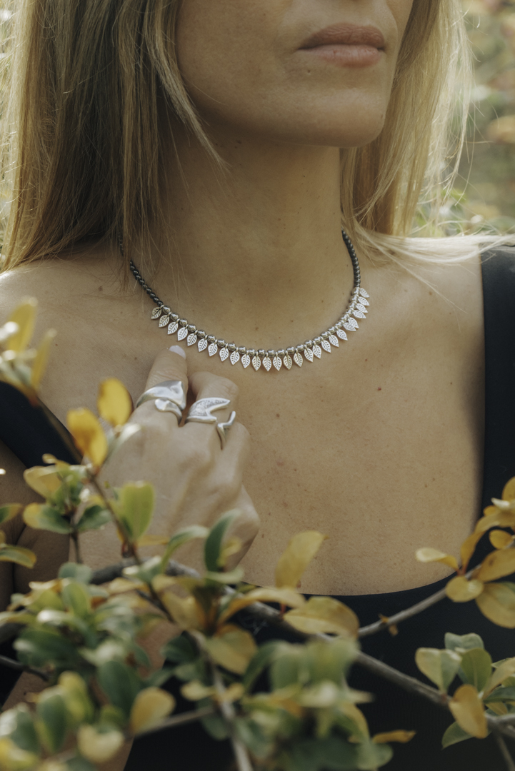 •Υλικό :Κολιέ με χάντρες από μαύροί κ ασημί αιματίτη, επάργυρα στοιχεία με ασήμι 925