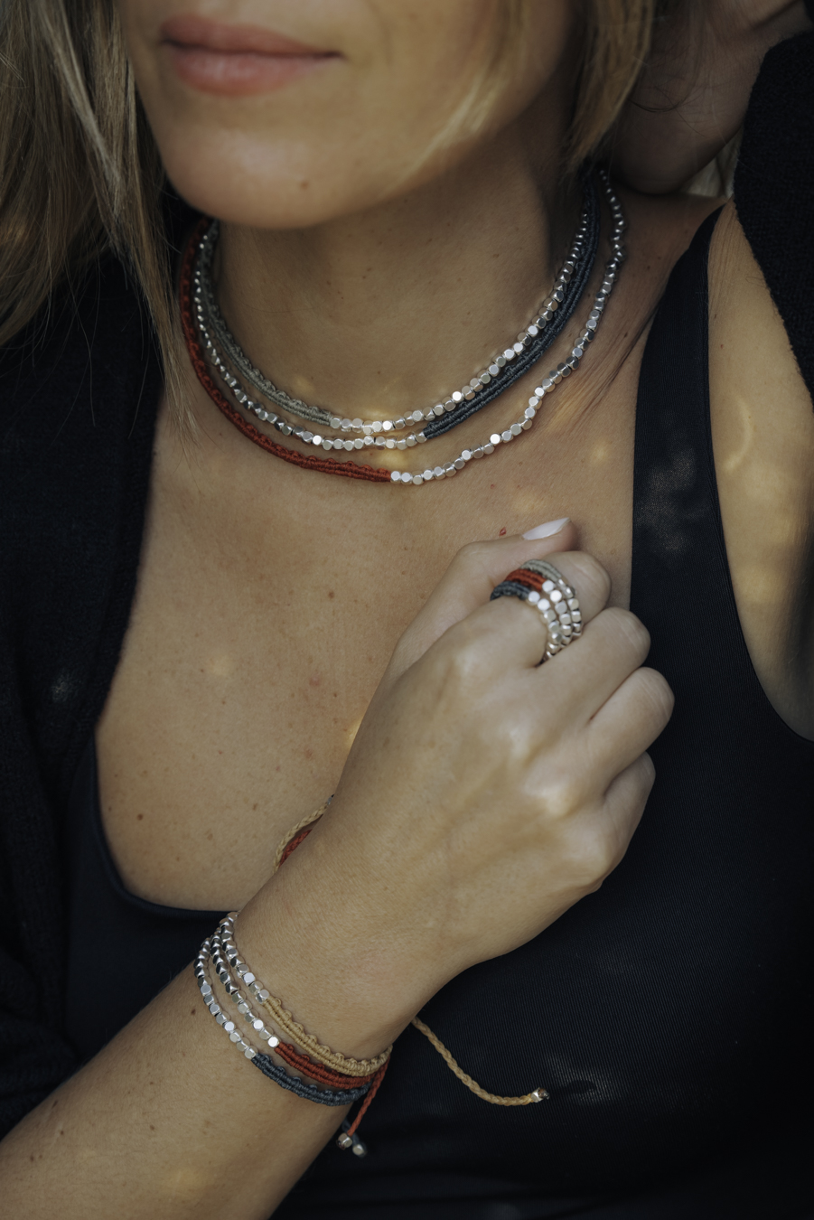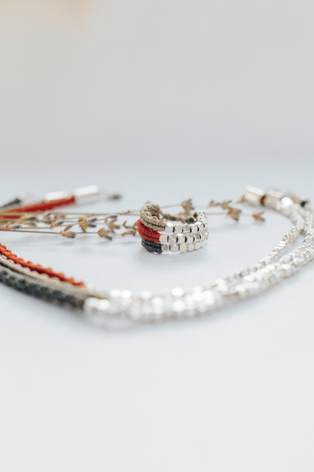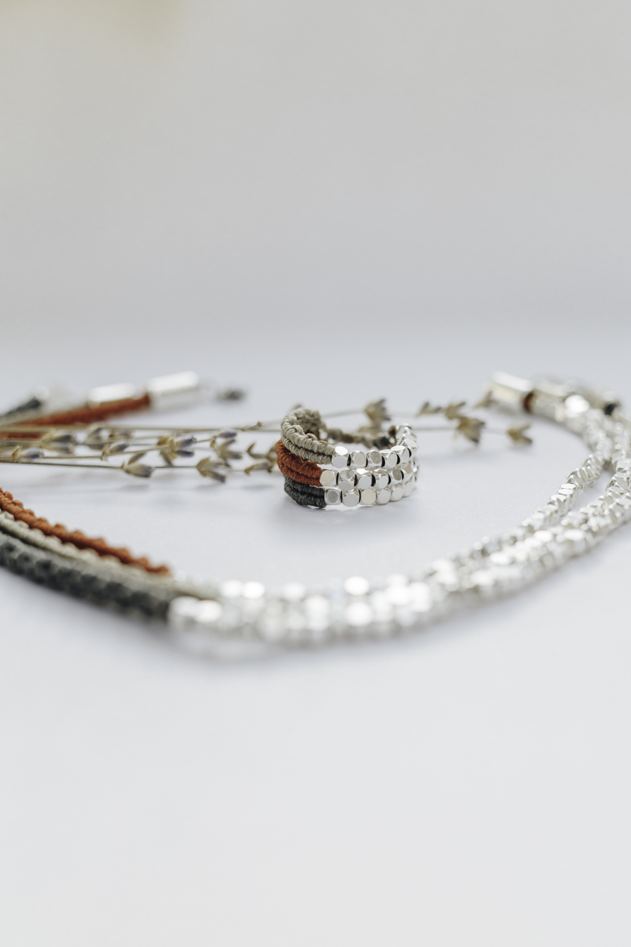 •Υλικό : μακραμέ πλεκτά τσόκερ με επάργυρα στοιχεία