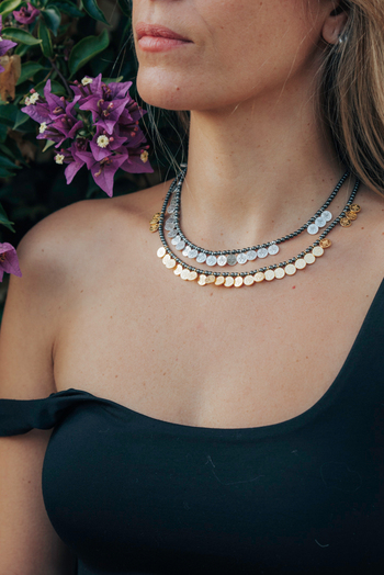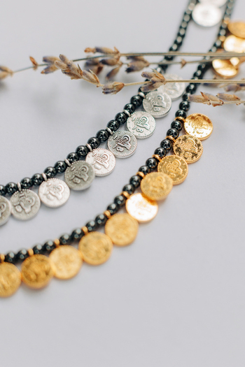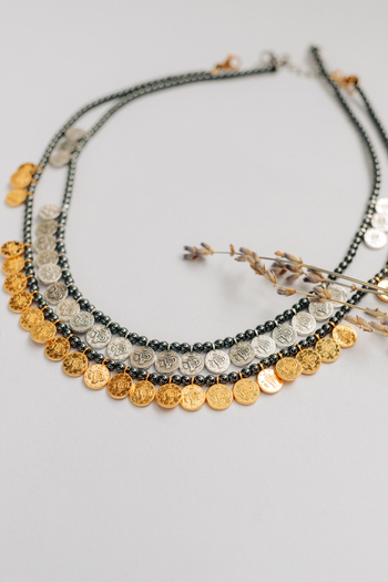 •Υλικό :Κολιέ με χάντρες αιματίτη,επάργυρα κ επίχρυσα στοιχεία