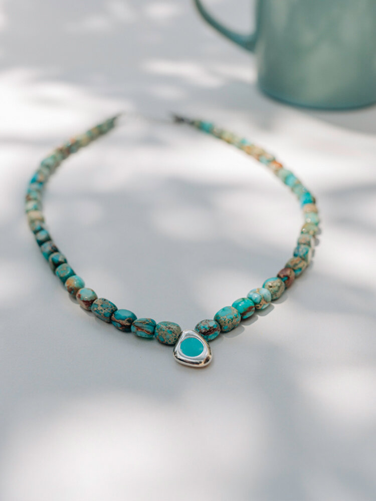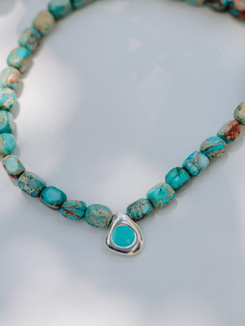 •Υλικό :Κολιέ με χάντρες ιασπίς,επάργυρο στοιχείο με σμάλτο