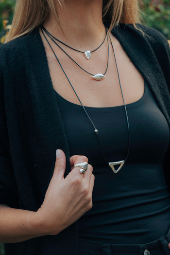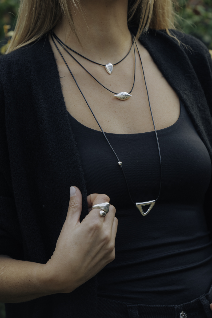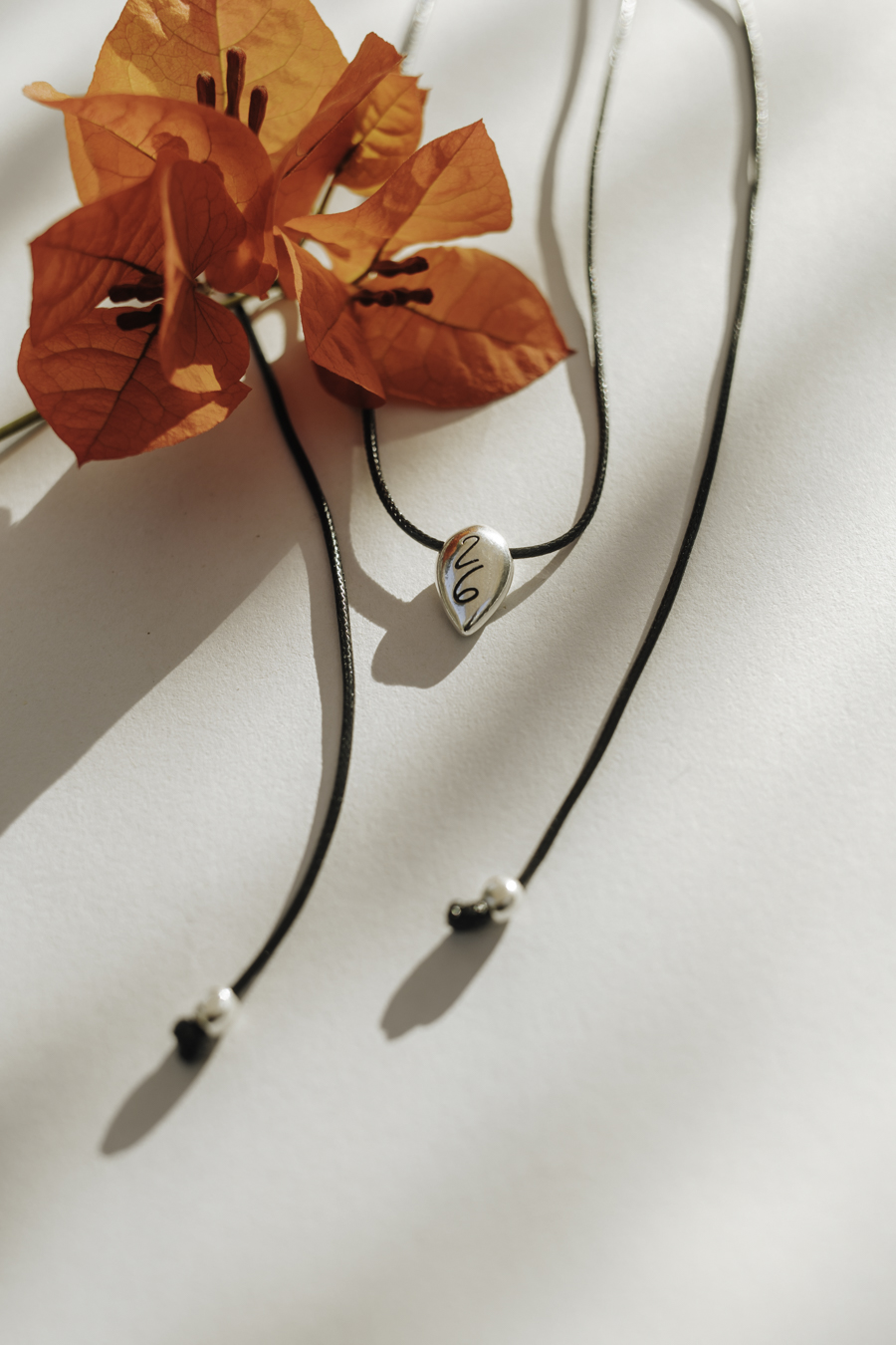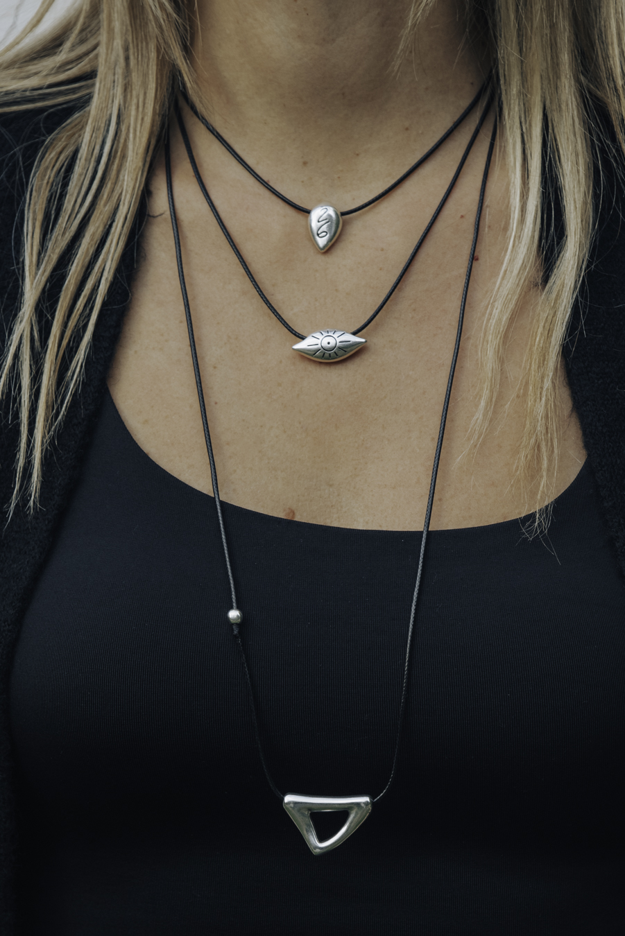 •Υλικό :Κολιέ με μαύρο κορδόνι κ επάργυρο στοιχείο από ασήμι 925