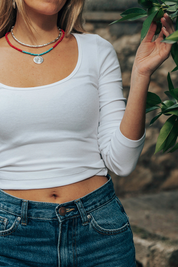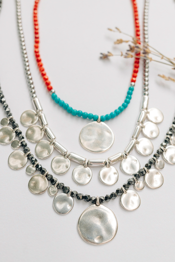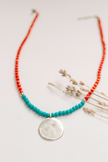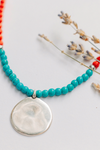 •Υλικό :Κολιέ με χάντρες από κοράλι,τιρκουαζ χαολίτη κ επάργυρα στοιχεία
