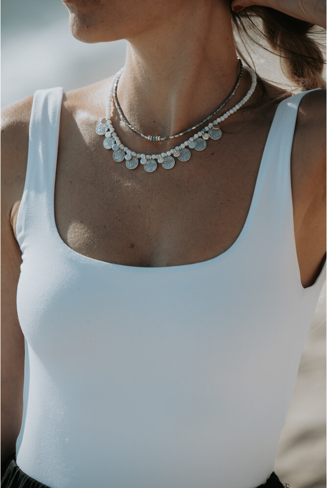 •Υλικό :Κολιέ με χάντρες φίλντισι,επάργυρα στοιχεία η επίχρυσα