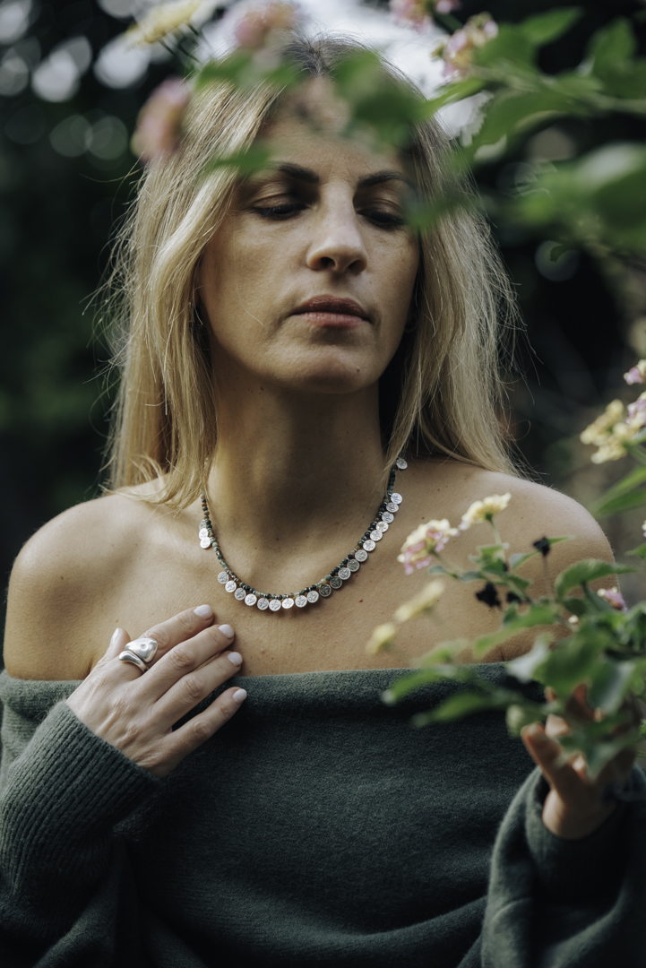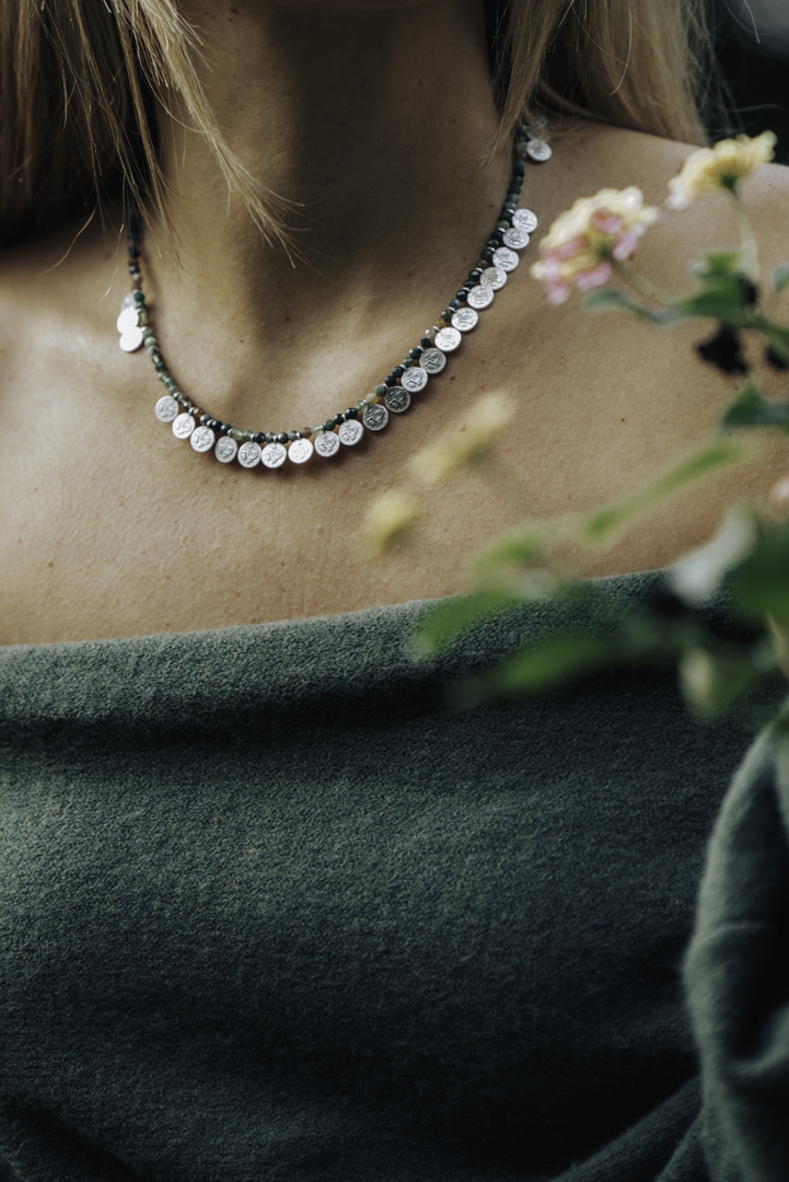 •Υλικό :Κολιέ με χάντρες από ινδικό αχάτη κ επάργυρα στοιχεία από ασήμι 925