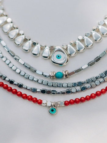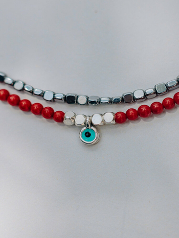 •Υλικό :Κολιέ με χάντρες κοράλι,επάργυρα στοιχεία από ασήμι 925 κ σμάλτο
