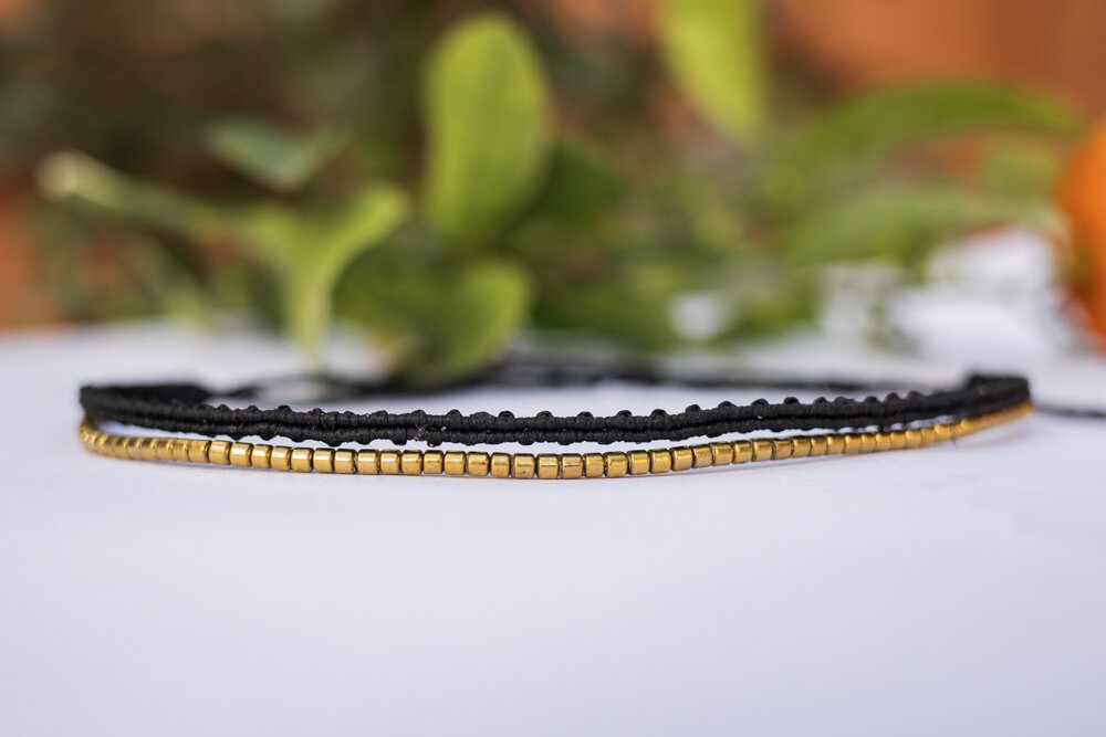 •Υλικό :Μακραμέ κολιέ τσόκερ,πλεκτό μαύρο με χρυσές χάντρες αιματίτη