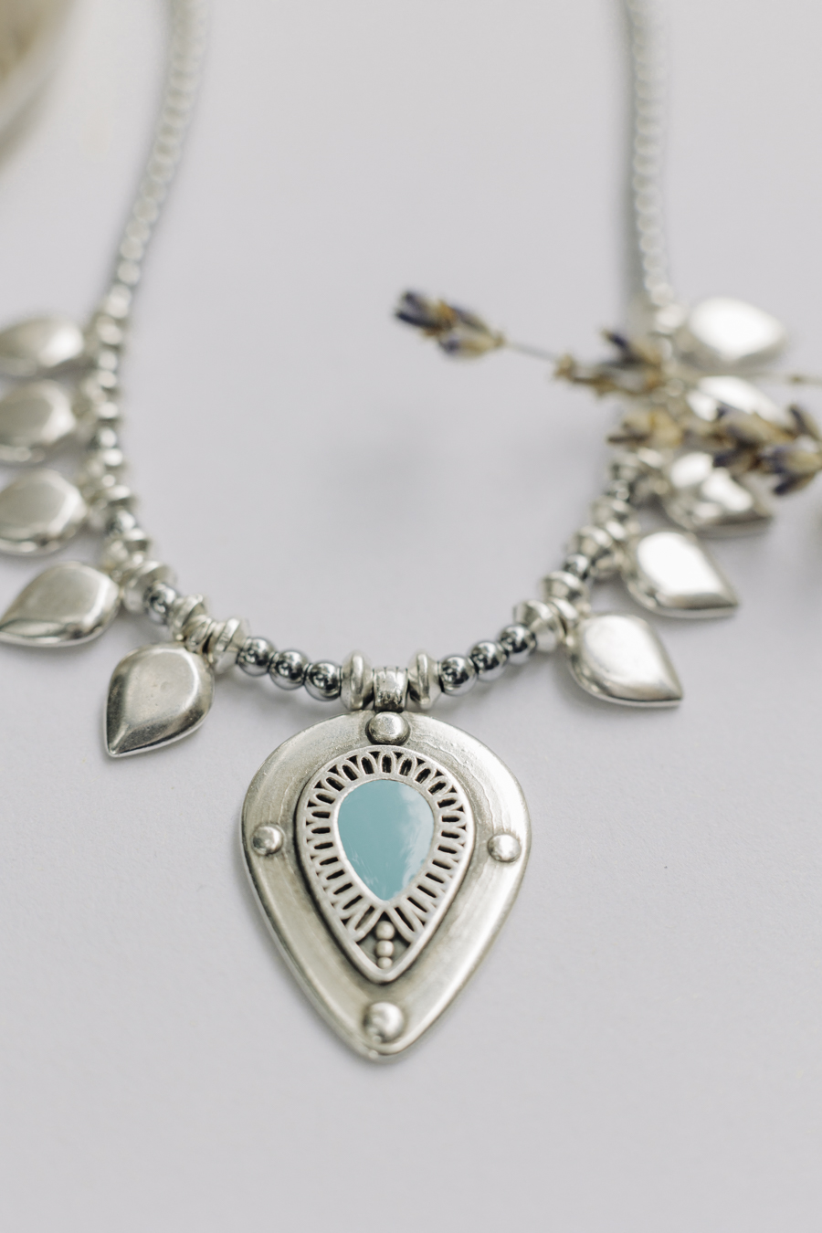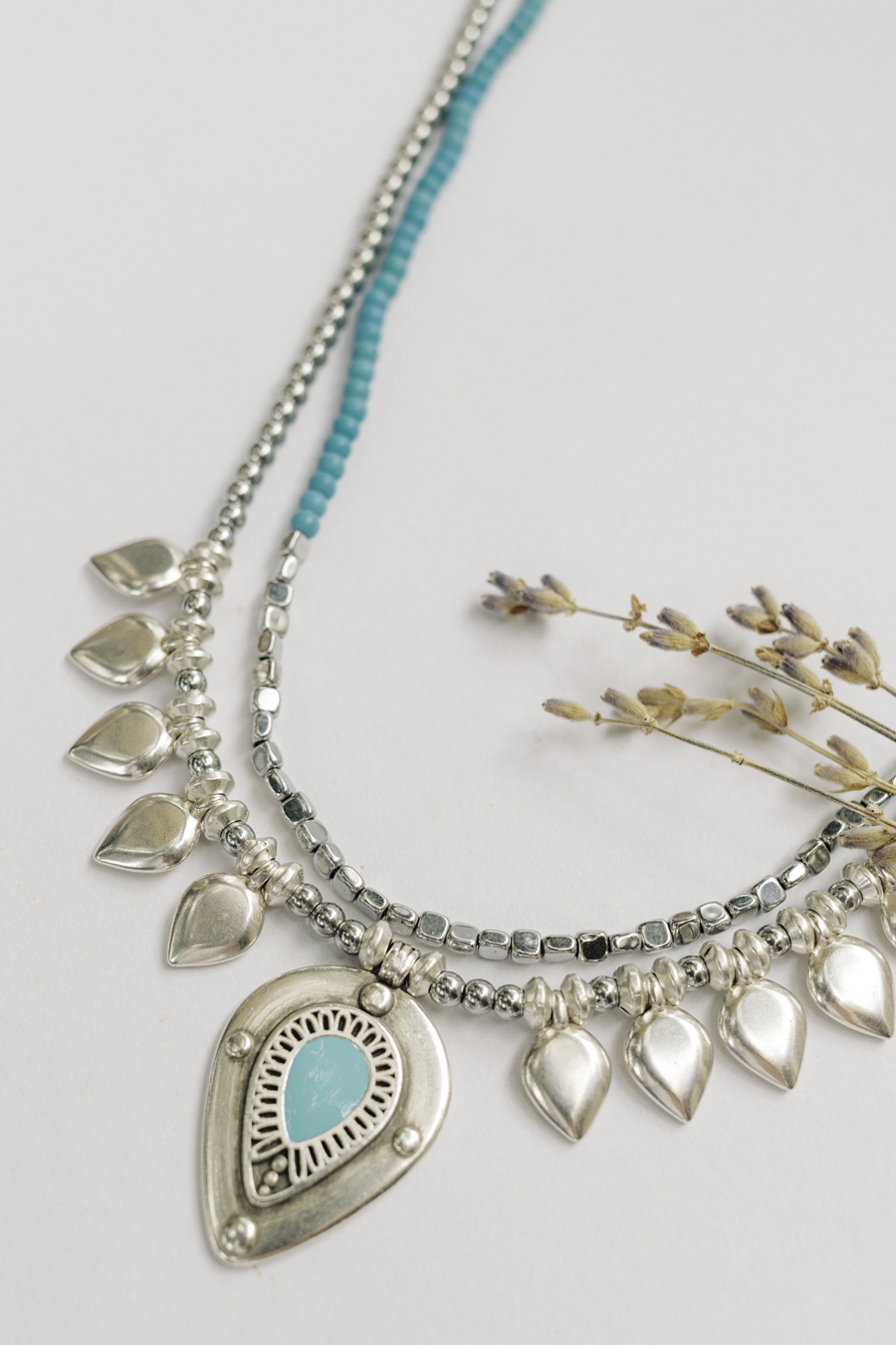 •Υλικό :Kολιέ με χάντρες αιματίτη,επάργυρα στοιχεία από ασήμι 925 κ σμάλτο