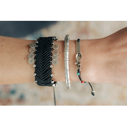 •Υλικό :Μαύρη κερωμένη κλωστή,με επάργυρα στοιχεία από ασήμι 925