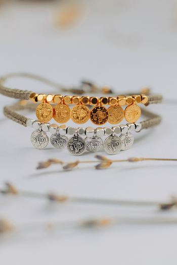 •Υλικό :Μακραμέ βραχίολι με επάργυρα στοιχεία ή επίχρυσα