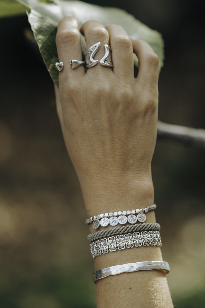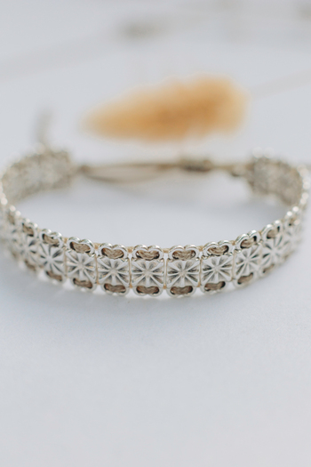 •Υλικό :κηρωμένη μπέζ κλωστή,επάργυρα στοιχεία από ασήμι 925
