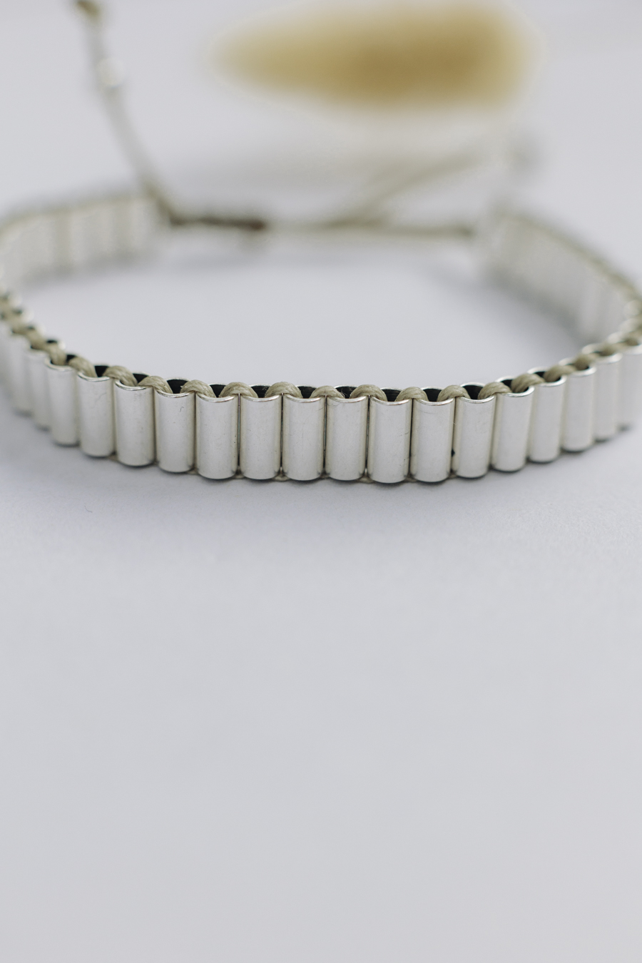•Υλικό : κηρωμένη κλωστή,επάργυρα σωληνάκια από ασήμι 925