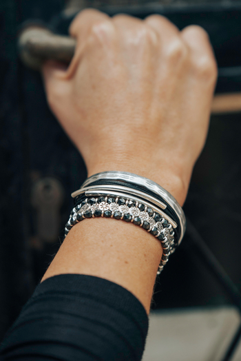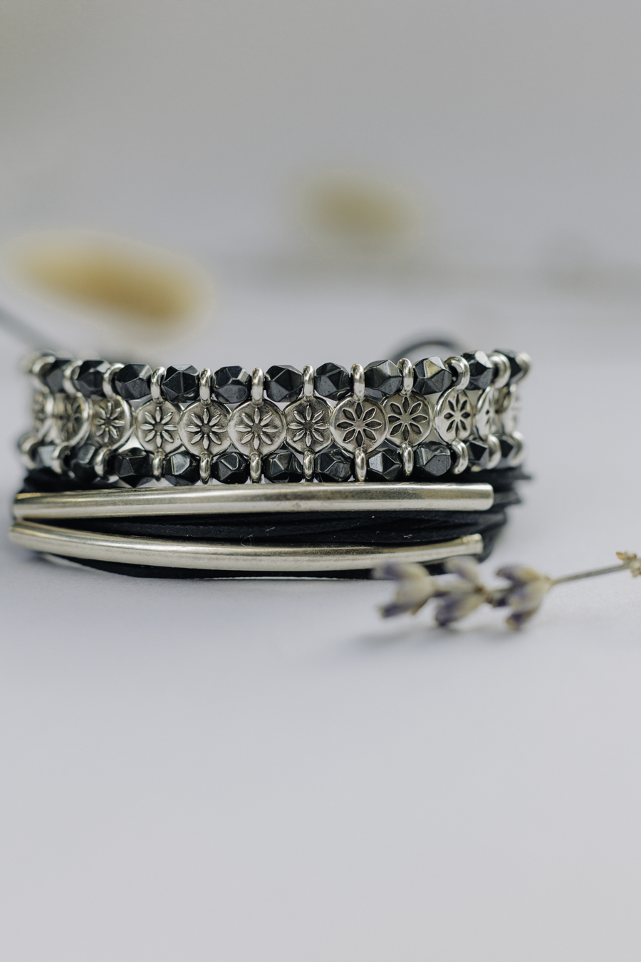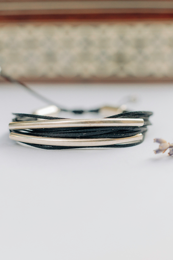 •Υλικό :Μαύρη κηρωμένη κλωστή κ επάργυρα στοιχεία