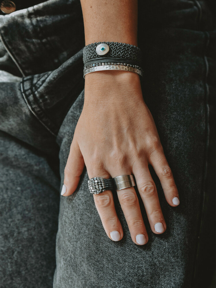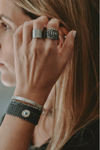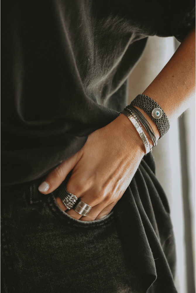 •Υλικό : κηρωμένη κλωστή,επάργυρο στοιχείο με σμάλτο