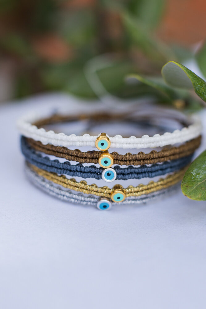 •Υλικό : κηρωμένη κλωστή,μεταλλικό μάτι με σμάλτο