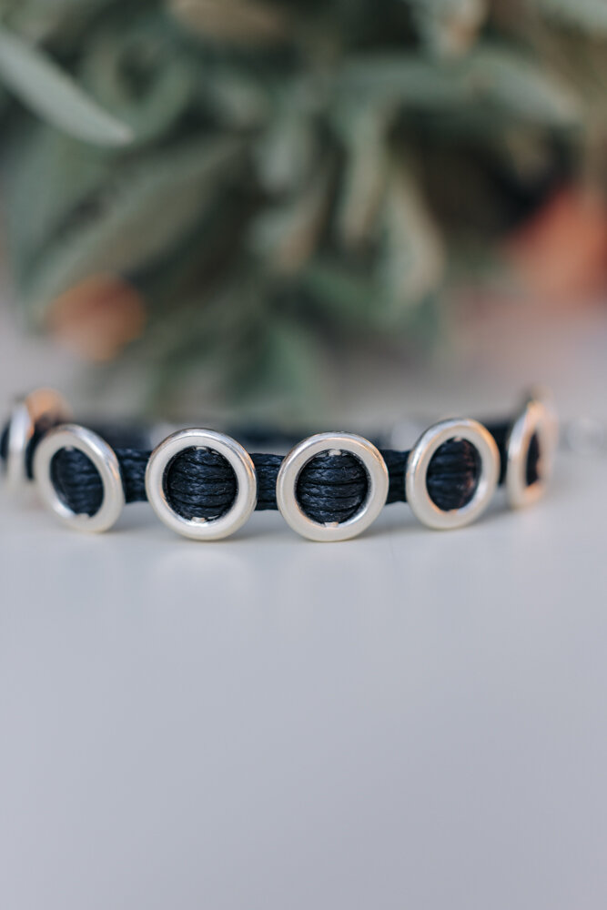 •Υλικό :βραχιόλι επάργυρα στοιχεία 925 με μαύρη κηρωμένη κλωστή