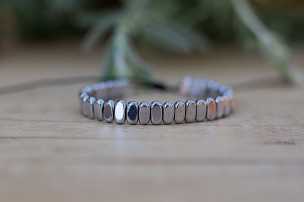 •Υλικό : κορδόνι,ασημί αιματίτης