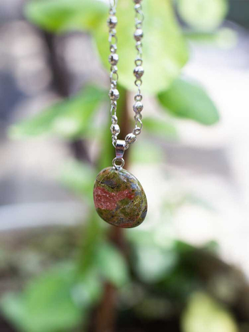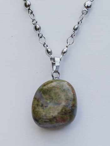 Δώστε ξεχωριστό στυλ στην κάθε σας εμφάνιση και ταυτόχρονα απολαύστε τη θεραπευτική δράση των κρυστάλλων με το πανέμορφο Μενταγιόν Λαιμού “ Unakite ” (Ουνακίτης) συνοδευόμενο από υπέροχη, ασημένια αλυσίδα.