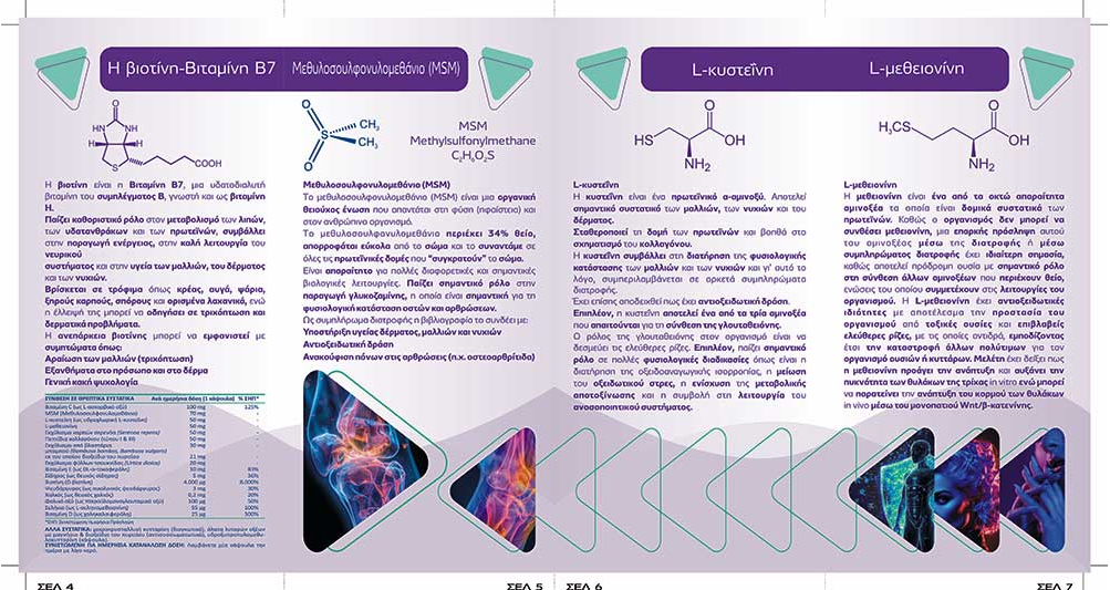 Η βιοτίνη, ο ψευδάργυρος και η τσουκνίδα συμβάλλουν στη διατήρηση της κατάστασης του δέρματος, καθώς επίσης ο χαλκός συμβάλλει στο φυσιολογικό χρωματισμό του δέρματος.