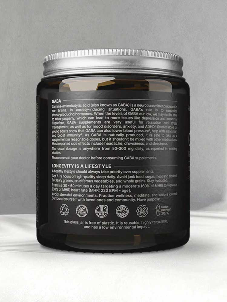 Σε καταστάσεις άγχους, το GABA συμβάλλει στη μείωση της επίδρασης των ορμονών του στρες υποστηρίζοντας τη χαλάρωση, την ψυχική ισορροπία και τη βελτίωση της διάθεσης και επαναφέροντας τη φυσική ηρεμία και την ευεξία του οργανισμού. Μελέτες δείχνουν ότι 300mg GABA μπορεί να βελτιώσουν σημαντικά τη διαχείριση της ΔΕΠΥ και του χρόνιου στρες, τη διάρκεια και την ποιότητα του ύπνου, τη μείωση της αρτηριακής πίεσης, την ανοσολογική υποστήριξη και την αντιμετώπιση του προεμμηνορροϊκού συνδρόμου (PMS).