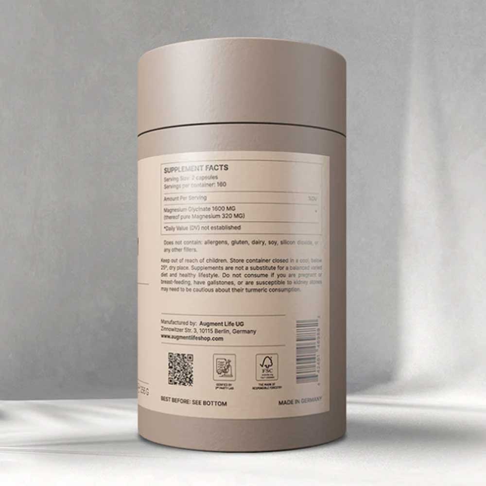 Περιέχει 800 mg Magnesium Glycinate / 160 mg στοιχειακό μαγνήσιο (20 %).