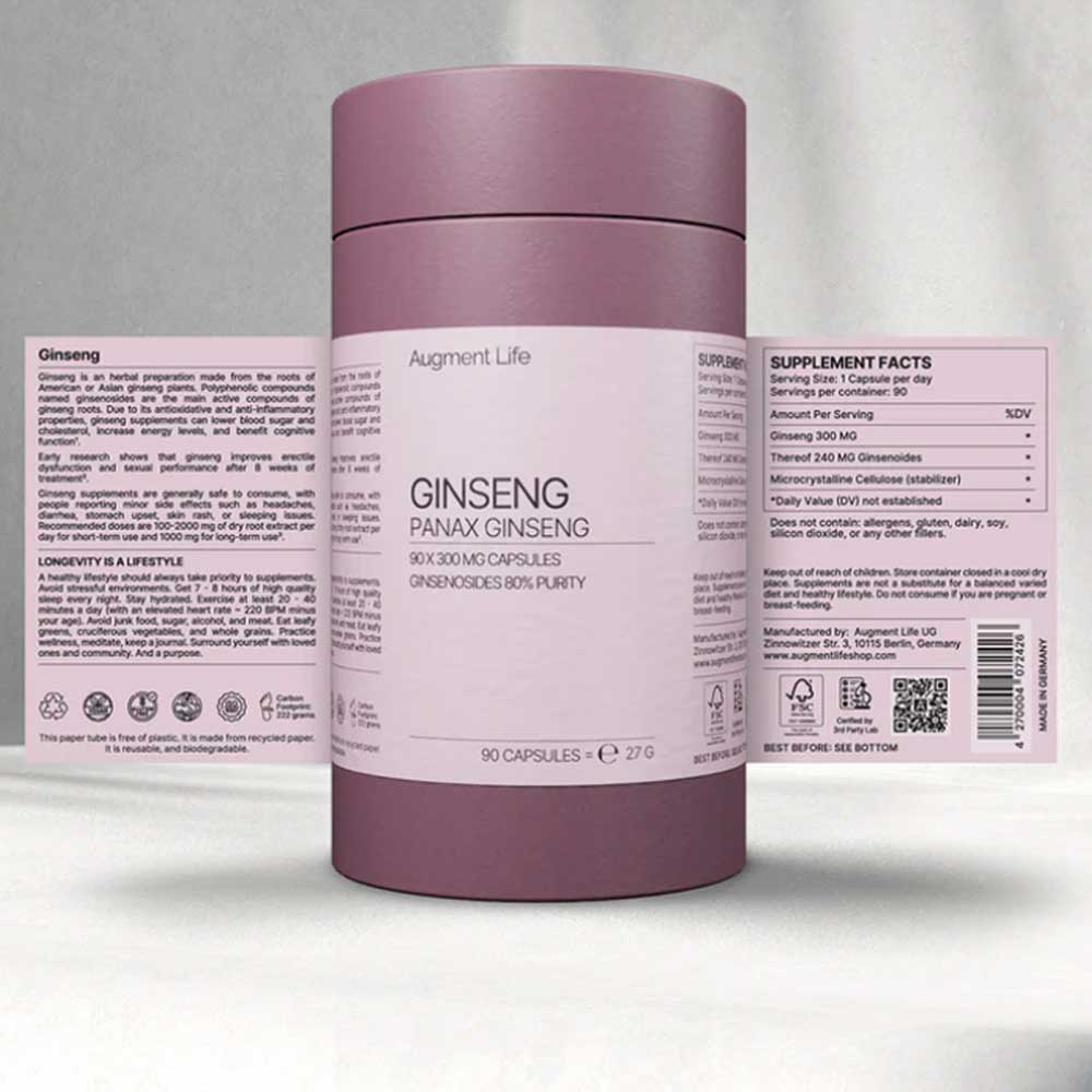 Κάθε vegan κάψουλα περιέχει 300 mg Panax Ginseng 80% Ginsenosides
