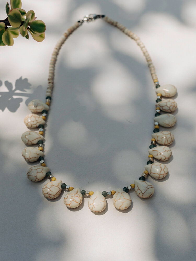 •Υλικό :Kολιέ χάντρες απο χαολίτη,γυάλινες κ επάργυρες