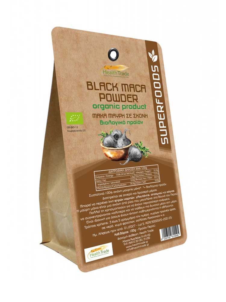 Η σκόνη μαύρη μάκα είναι η σπανιότερη και πιο ισχυρή μορφή μάκας (10-15%) σε σχέση με τις άλλες (κίτρινη και κόκκινη) και χρησιμοποιείται για την ενδυνάμωση και την τόνωση του οργανισμού. Έχει έντονη, γήινη γεύση και χρώμα καφέ σκούρο.