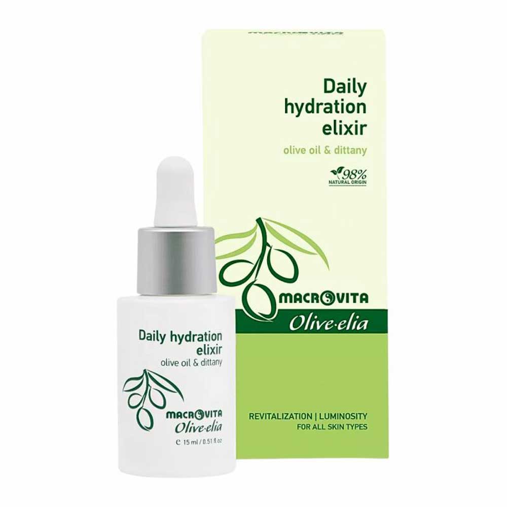 Πολυτελές Ελιξίριο Ενυδάτωσης από την εταιρία Macrovita Olivelia. Ένα μοναδικό προϊόν σχεδιασμένο να δεσμεύει και να διατηρεί την υγρασία του δέρματος, προσφέροντας βαθιά και μακροχρόνια ενυδάτωση. Η πλούσια σύνθεσή του, εμπλουτισμένη με Ελαιόλαδο Δίκταμο και Υαλουρονικό Οξύ, θρέφει, τονώνει και αναζωογονεί την επιδερμίδα χαρίζοντας ελαστικότητα, απαλότητα και νεανική όψη, ενώ παράλληλα την προστατεύει από τους περιβαλλοντικούς παράγοντες που προκαλούν γήρανση. Μία ανάλαφρη φόρμουλα που απορροφάται γρήγορα, χωρίς να αφήνει ίχνη λιπαρότητας. Κατάλληλο για όλους τους τύπους δέρματος