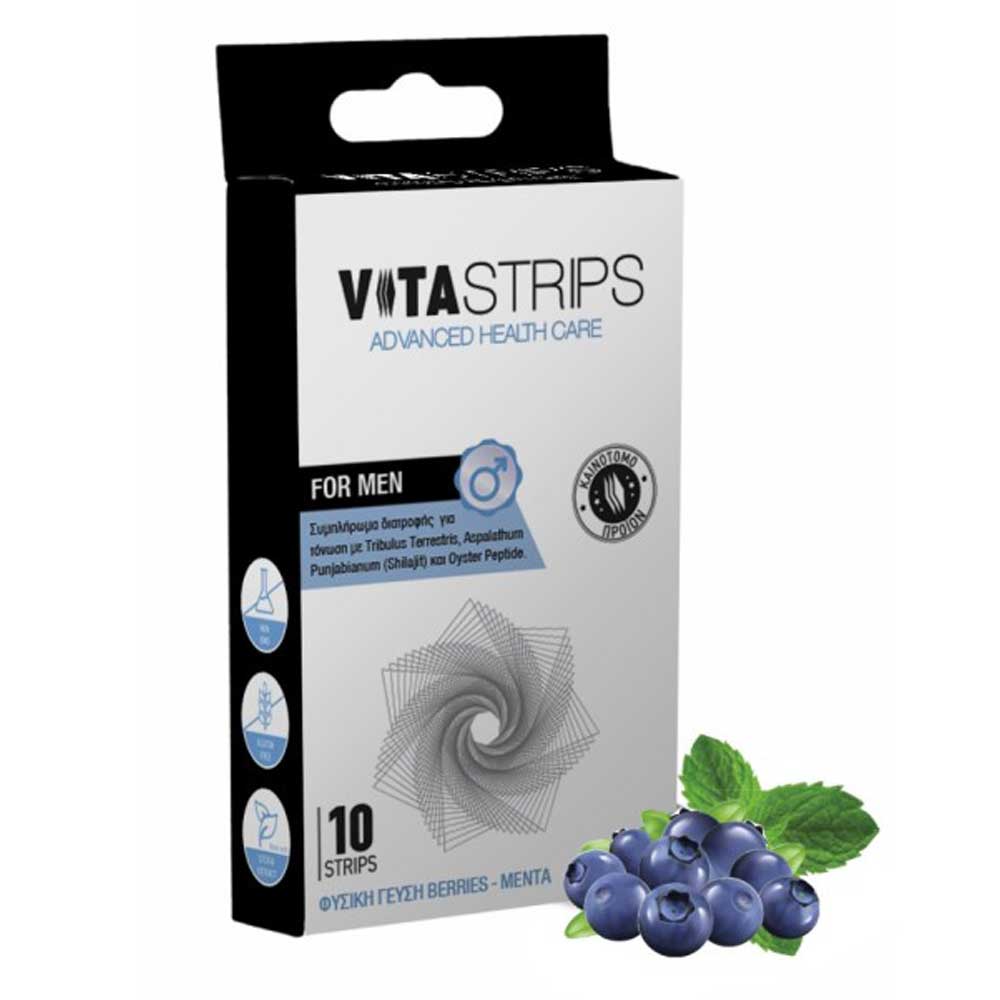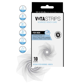 Το Vitalstrips Advanced Health Care for Men είναι ένα καινοτόμο συμπλήρωμα διατροφής, σχεδιασμένο για την ενίσχυση της υγείας, της ζωτικότητας και της σεξουαλικότητας των ανδρών, σε μορφή στοματικών ταινιών, οι οποίες διαλύονται στη γλώσσα χωρίς νερό, Μέσω της τεχνολογίας Thin Film τα συστατικά απορροφούνται απευθείας από τους βλεννογόνους προσφέροντας ταχύτερη επίδραση και μεγαλύτερη βιοδιαθεσιμότητα.