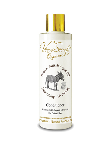 Το Γάλα γαϊδάρας είναι ένα πραγματικό ελιξίριο ομορφιάς. Η πλούσια σε βιταμίνες, μέταλλα, ιχνοστοιχεία και λιπαρά οξέα (ωμέγα-6), σύστασή του, βοηθά στην αναδόμηση της τρίχας και στην προστασία της από τη φθορά, ενώ παράλληλα ανανεώνει και αναζωογονεί τα μαλλιά, προσδίδοντάς τους εντυπωσιακή ζωντάνια. Το έλαιο αργκάν διαθέτει σημαντικές ενυδατικές ικανότητες, ενώ θεωρείται και άριστο “μαλακτικό” ιδιαίτερα για τα ξηρά και ταλαιπωρημένα από τις βαφές μαλλιά. Ο συνδυασμός πρωτεϊνών σιταριού και μελιού εμπλουτίζει την τρίχα με βιταμίνες και μέταλλα, τα οποία θρέφουν και αναγεννούν την τρίχα, ενώ τα εκχυλίσματα ροδιού και ελιάς προστατεύουν το χρώμα από το ξεθώριασμα, ενώ παράλληλα χαρίζουν όγκο, λάμψη και ενέργεια.
