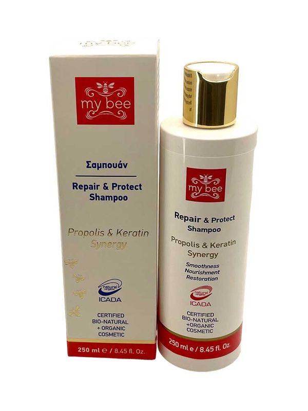 Η ευεργετική του φόρμουλα συνδυάζοντας τα φυσικά, αντιοξειδωτικά οφέλη της πρόπολης με τις δυναμωτικές ιδιότητες της κερατίνης, θρέφει σε βάθος το τριχωτό της κεφαλής και τα μαλλιά, επανορθώνει και δυναμώνει την τρίχα, μειώνοντας το σπάσιμο και τις σχισμένες άκρες, ενθαρρύνει την υγιή ανάπτυξη των μαλλιών, βελτιώνοντας το συνολικό πάχος και την πυκνότητά τους, ενώ παράλληλα προάγει την ελαστικότητά τους, καθιστώντας τα πιο ανθεκτικά και πιο εύκολα στη διαχείριση. Η τακτική χρήση του σαμπουάν έχει ως αποτέλεσμα πιο δυνατά, πιο λεία, πιο πυκνά και πιο όμορφα μαλλιά.
