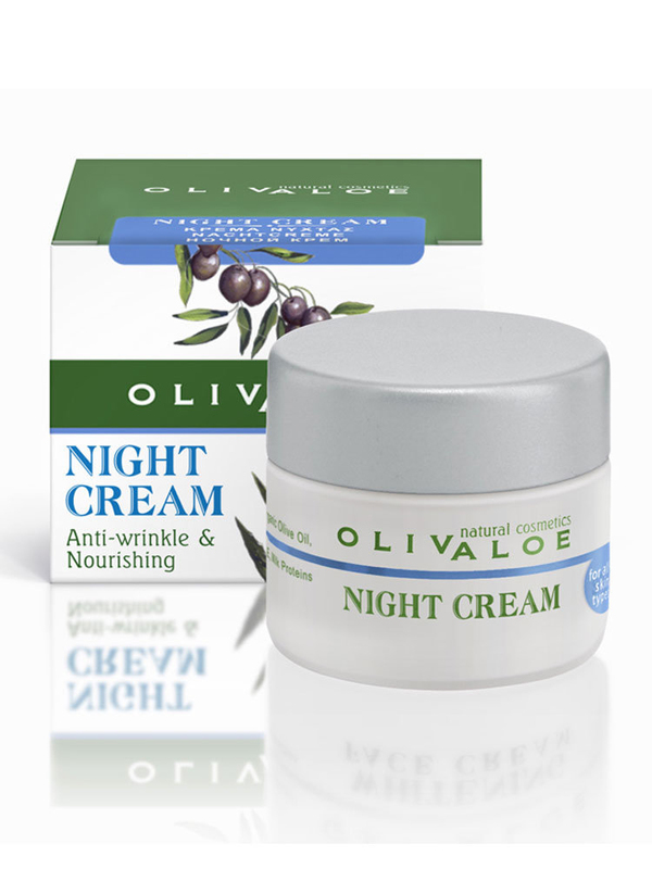 H Night Cream for all skin types της Olivealoe απότελεί μία αντιρυτιδική και θρεπτική κρέμα νύχτας κατάλληλη για κάθε τύπο δέρματος. Ο συνδυασμός πανθενόλης και βιταμίνης Ε βοηθά στη μείωση της διαθερμικής απώλειας νερού, προσφέροντας εντατική ενυδάτωση και ανακουφίζοντας άμεσα το ξηρο και ευαίσθητο δέρμα, που ανακτά τη φυσική υγρασία και τη χαμένη ελαστικότητά του. Η απαλή σύνθεση της αλόης που περιέχει, τονώνει το λιπαρό και μεικτό δέρμα χωρίς να δημιουργεί επιπλέον λιπαρότητα. Η αντιρυτιδική δράση της κρέμας ενισχύεται από ένα μείγμα γαλακτικών πρωτεϊνών ( γαλακτολευκοματίνη και γαλακτοσφαιρίνη), το οποίο βοηθά στην κυτταρική ανάπλαση του δέρματος και επιβραδύνει τη γήρανση που προκαλείται από περιβαλλοντικούς παράγοντες (ηλιακή ακτινοβολία, ατμοσφαιρική ρύπανση, κάπνισμα, κ.α), καθώς και από φυσιολογικές μεταβολικές διεργασίες.