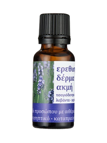 Η φυτική Γλυκερίνη είναι σημαντικό ενυδατικό στοιχείο για την επιδερμίδα, καθώς συγκρατεί την υγρασία στο δέρμα μας διατηρώντας το απαλό και ενυδατωμένο. Το Τεϊόδεντρο είναι από τα πλέον θεραπευτικά αιθέρια έλαια με ισχυρές αντισηπτικές, αντιβακτηριδιακές, αντιικές και αντιμυκητιακές ιδιότητες, ευεργετικό για ένα ευρύ φάσμα προβλημάτων του δέρματος, συμπεριλαμβανομένης της ακμής. Διαλυμένο σε κάποιο φυτικό έλαιο βάσης είναι ιδιαίτερα ωφέλιμο για τις λιπαρές - ακνεϊκές επιδερμίδες. Η Λεβάντα είναι ηρεμιστική και απολυμαντική, ενώ επιδεικνύει και ισχυρή επουλωτική και αναγεννητική δράση. Ιδανική για την καταπολέμηση δερματολογικών προβλημάτων, μολυσματικών ή αλλεργικών, όπως ακμή, ψωρίαση, κνησμός, έκζεμα. Το αιθέριο έλαιο Γεράνι διαθέτει πλούσιες στυπτικές και αντιμικροβιακές ιδιότητες. Είναι εξισορροπιστικό, κατευνάζει τις κοκκινίλες και τους ερεθισμούς του δέρματος και καταπολεμά τις λοιμώξεις και τους μύκητες, ενώ είναι ιδανικό στην ακμή και το έκζεμα. Όταν προστίθεται σε κάποιο λάδι για μασάζ, καταπολεμά την ξηρότητα και βοηθά στη διατήρηση της υγρασίας του δέρματος.