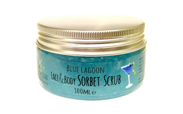 Scrub Προσώπου & Σώματος με Αλόη και μεθυστικό άρωμα που θυμίζει καλοκαιρινό κοκτέιλ Blue Lagoon 100ml.